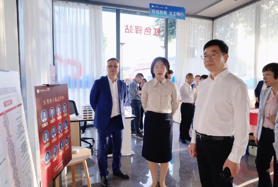 在和平國際醫(yī)院院長薛志輝、黨委書記盧瓊的介紹下,何學(xué)考一行先后參觀了醫(yī)院醫(yī)務(wù)社工服務(wù)點(diǎn)、文化墻、黨建長廊及紅色驛站,詳細(xì)了解醫(yī)院發(fā)展現(xiàn)狀、“兩新黨建”工作成效,并對醫(yī)務(wù)社工部“五位一體”新模式的開展情況重點(diǎn)調(diào)研。作為溫州首家社會(huì)辦醫(yī)機(jī)構(gòu)的醫(yī)務(wù)社工部,和平國際醫(yī)院醫(yī)務(wù)社工部自今年七月成立以來,積極探索“醫(yī)院+社區(qū)+社工機(jī)構(gòu)+慈善基金組織+志愿者隊(duì)伍”的“五位一體”協(xié)同模式,推進(jìn)“院內(nèi)+院外+社會(huì)”大聯(lián)動(dòng),以專業(yè)社工服務(wù)為醫(yī)療融入人文關(guān)懷,改善患者就醫(yī)體驗(yàn),患者滿意度從80%提升到98%,今年累計(jì)開展“紅悅工程”醫(yī)療服務(wù)43場、惠及群眾1935人次。