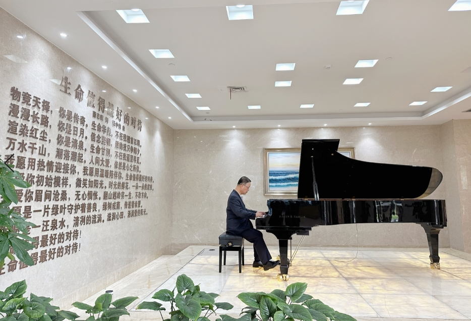 11月24日上午,在和平國際醫(yī)院一樓大廳,門診、體檢、藥房人來人往,一段《在希望的田野...