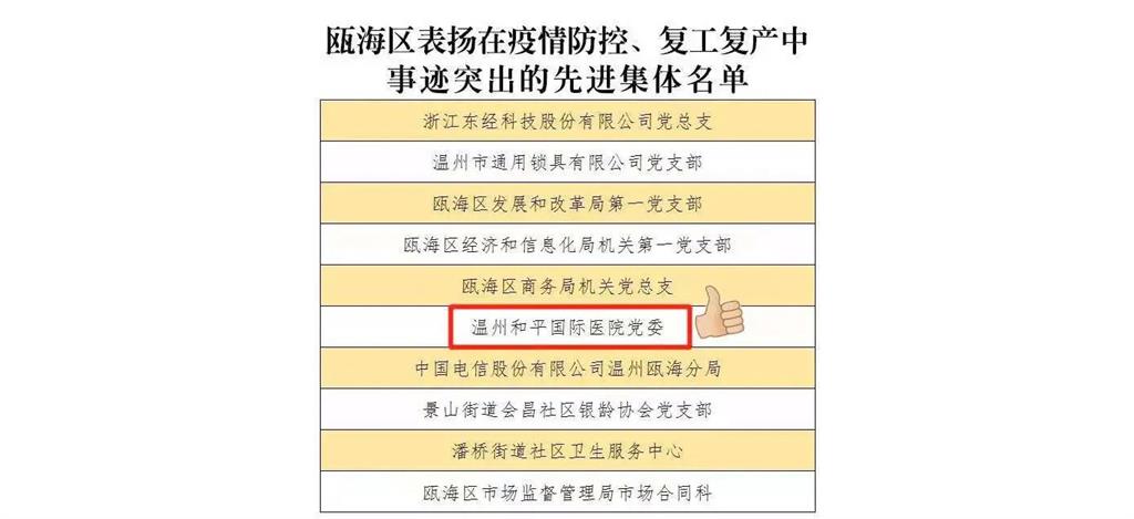 醫(yī)院在疫情防控、復(fù)工復(fù)產(chǎn)中表現(xiàn)突出,被甌海區(qū)委區(qū)政府通報(bào)表彰。