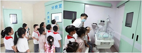 在分娩室門口,孩子們迫不及待了,沒等醫(yī)生開門就不停地踮起腳尖往里看。進(jìn)入里面,周婷給大家講解了孕媽媽分娩后必不可少的輔助儀器,包括保暖臺、搶救臺等對新生寶寶至關(guān)重要的儀器。