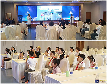 和平國際醫(yī)院高端婦產(chǎn)中心的周婷醫(yī)生先帶領(lǐng)大家觀看《生命的起源》,并進(jìn)行更通俗易懂的解釋。隨后,現(xiàn)場的一位小朋友害羞地說:“精子親卵子一口,然后就生出了小baby~”,話音未落,便逗得現(xiàn)場所有人哈哈大笑。