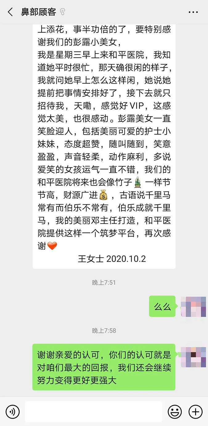 我的美麗由鄧主任打造,感謝和平國際提供這樣一個實現(xiàn)“求美夢”的平臺,再次感謝!