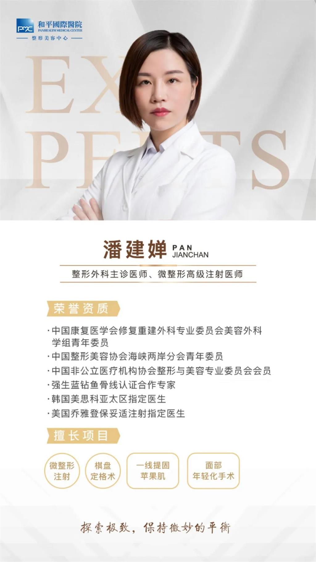 潘建嬋醫(yī)生作為喬雅登、保妥適等指定注射專家,始終堅持精煉注射技藝,立足新潮觀念和前沿科技,結(jié)合獨特的美學(xué)設(shè)計理念,為廣大求美者定制個性化塑美方案,帶來高定的美麗煥變。