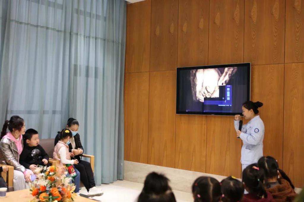 隨后,同學(xué)們和家長(zhǎng)們觀看了嬰兒B超和四維彩超圖片,參觀胎心監(jiān)護(hù)室、胎兒分娩室。