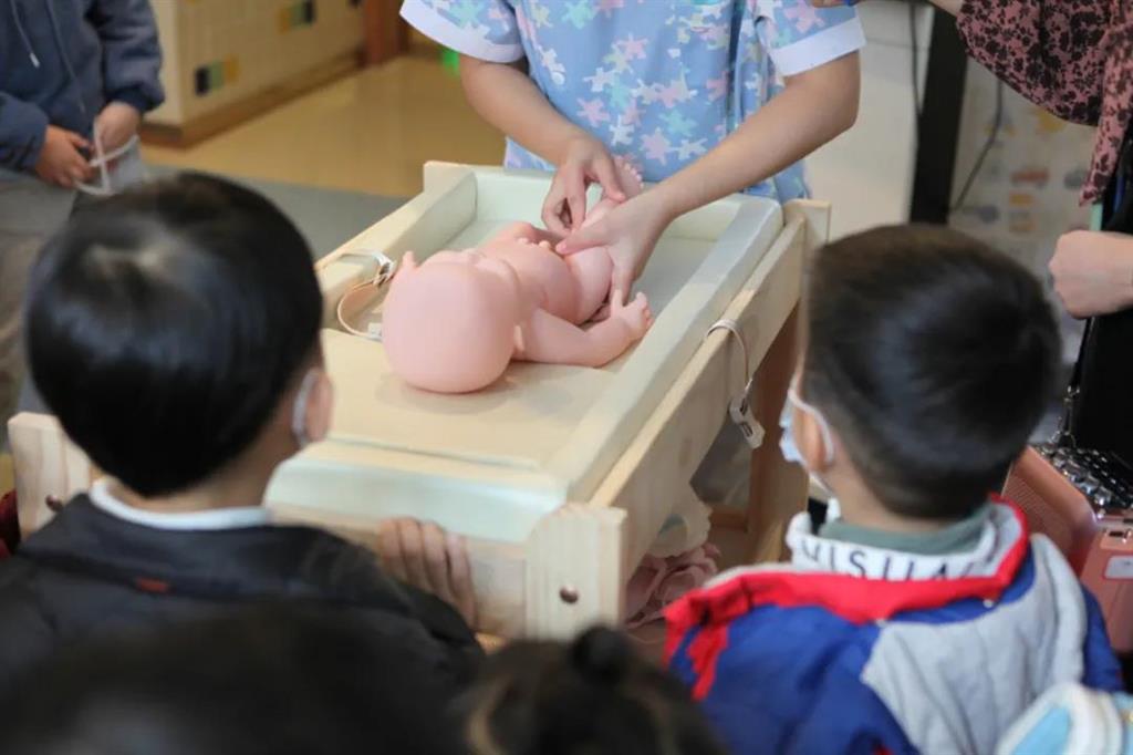 第一次了解關(guān)于嬰兒的知識(shí),同學(xué)們都非常感興趣,認(rèn)真地聽(tīng)著醫(yī)生解說(shuō)。