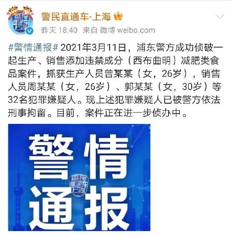 近日,西布曲明上了兩次微博熱搜:一次是警方通報,網(wǎng)紅郭美美因為銷售添加違禁成分的減肥類食品再次被抓;