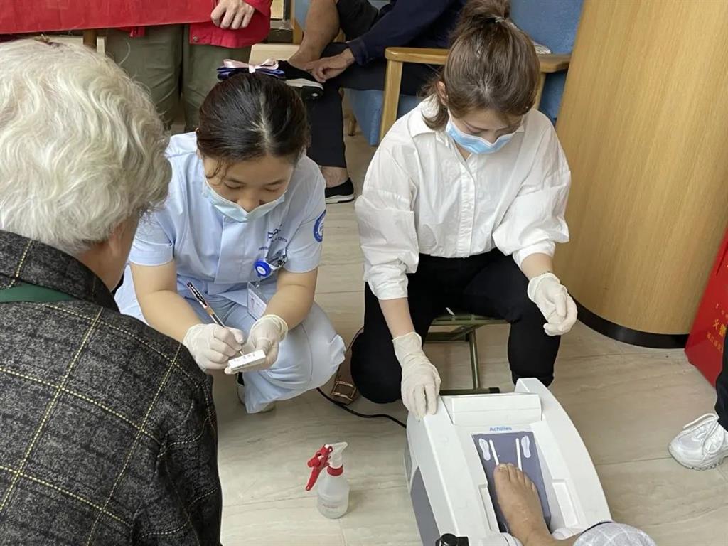 5月22日上午,“紅悅工程”義診團(tuán)走進(jìn)南垟社區(qū)國賓一號小區(qū),為社區(qū)內(nèi)的業(yè)主及孩子們提供測血壓、測血糖、骨密度測量等義診檢查及健康咨詢服務(wù)。