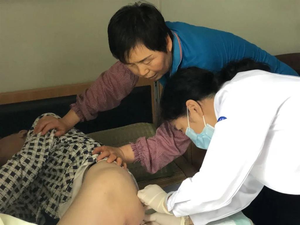 對于一些不便下床前來就診的老人,義診團(tuán)的醫(yī)生們進(jìn)行了查房會診,耐心檢查并為老人的病患處做了消毒、清理以及上藥等工作,告知睦鄰頤養(yǎng)中心護(hù)理人員老人病情現(xiàn)狀,以及該如何養(yǎng)護(hù)。