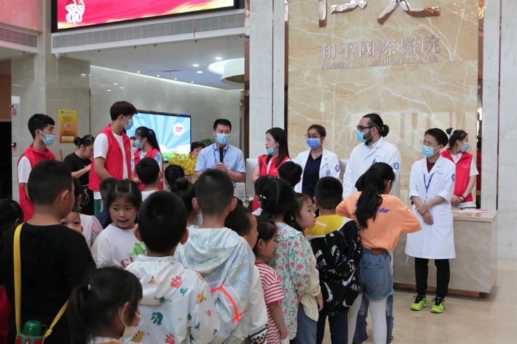 在這個(gè)屬于兒童們的特殊日子里,溫州和平國(guó)際醫(yī)院聯(lián)合南白象街道黨群服務(wù)中心邀請(qǐng)了廣場(chǎng)路小學(xué)、南白象實(shí)驗(yàn)小學(xué)、南白象幼兒園等40多名兒童來到和平國(guó)際醫(yī)院進(jìn)行“童心向黨,銘記黨恩”主題黨日活動(dòng)。