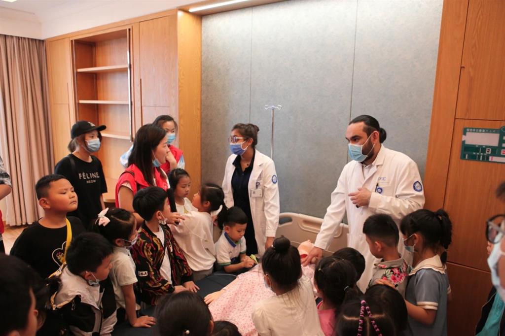 體驗(yàn)完當(dāng)“小小醫(yī)生”,和平國(guó)際醫(yī)院跨國(guó)醫(yī)生蘇瑪和豪孟德夫婦向小朋友們講解了“止血和包扎”、“心肺復(fù)蘇”等基本家庭急救知識(shí),小朋友們熱情高漲,爭(zhēng)先想要進(jìn)行演練。