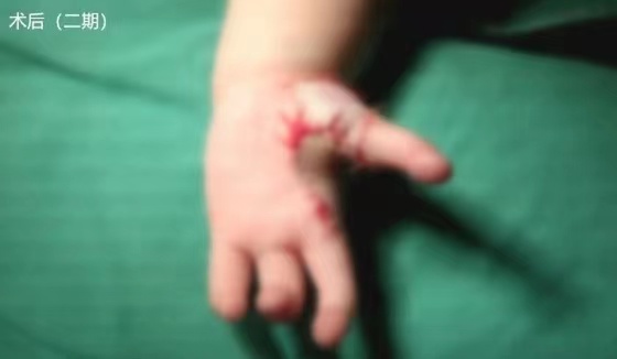 其中,一期橈骨延長(zhǎng)手術(shù)去年已經(jīng)完成,患者恢復(fù)得很好。這次主要行二期“食指拇化”手術(shù),也就是將食指離斷,重新轉(zhuǎn)位后“變成拇指”,使其發(fā)揮拇指的作用。
