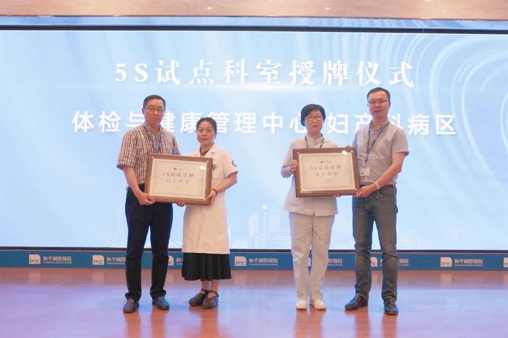 為切實(shí)打造國際標(biāo)準(zhǔn)的品質(zhì)服務(wù),創(chuàng)造舒適、高效、安全的醫(yī)療環(huán)境,和平國際醫(yī)院將以體檢中心及婦產(chǎn)中心為試點(diǎn)科室,通過5S管理改善工作環(huán)境、改進(jìn)工作習(xí)慣確保醫(yī)療工作走向更高的標(biāo)準(zhǔn)。 和平國際醫(yī)院董事長、院長薛志輝(右一)、賀亞東(左一)為5S試點(diǎn)科室(體檢中心、婦產(chǎn)科)授牌。