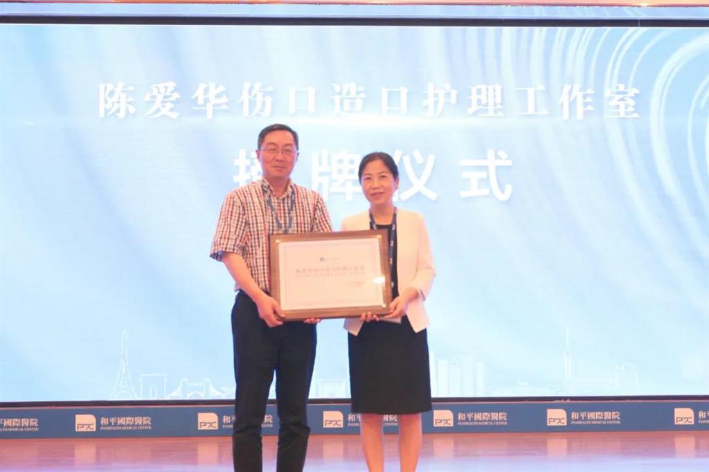 賀亞東為“陳愛華傷口造口護(hù)理工作室”授牌。