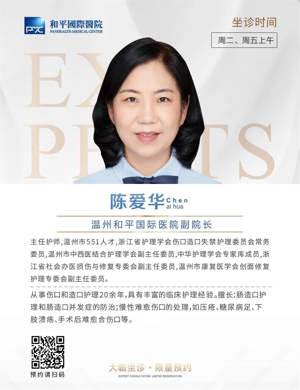 陳愛華傷口造口護理工作室是浙江省首家傷口造口護理工作室,對傷口、造口以及失禁患者提供規(guī)范化診療護理與咨詢,采用國際最先進的傷口濕性愈合理念,根據(jù)不同的傷口、造口、失禁,結(jié)合病人的全身情況,應(yīng)用新型的傷口敷料,預(yù)防與處理各種傷口、造口、潰瘍、壓瘡以及失禁性皮炎等,減輕患者在治療過程中的疼痛和不適,加速傷口修復(fù)與愈合,縮短治療周期。