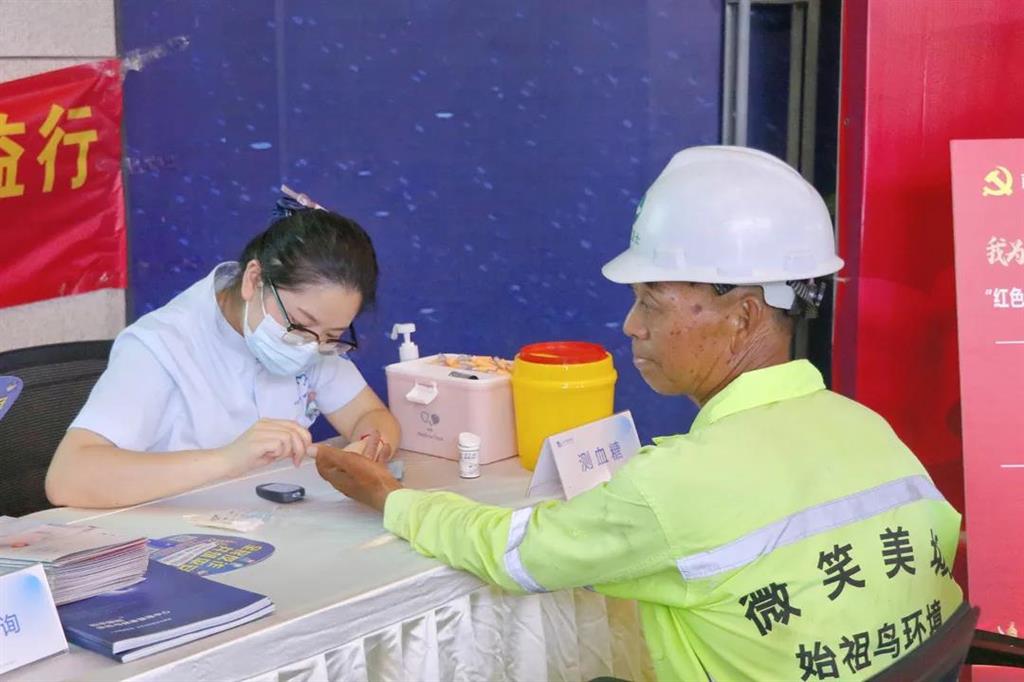 醫(yī)護(hù)人員耐心為每一位居民測(cè)血糖,環(huán)衛(wèi)工人在測(cè)量血糖的時(shí)候緊張地問(wèn)道:“我吃了午飯也可以測(cè)血糖嗎?”醫(yī)護(hù)人員貼心地詢問(wèn)他進(jìn)食的時(shí)間,并耐心地講解測(cè)血糖時(shí)的注意事項(xiàng)。在聽(tīng)到自己的血糖值是正常的,環(huán)衛(wèi)工人才安心離開(kāi)。