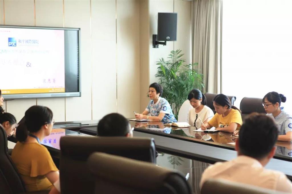 第一個掌聲 致臺灣講師:“跨過臺灣海峽,實現(xiàn)雙向交流。帶著專業(yè)、執(zhí)著、精益求精的職業(yè)精神,為和平國際帶來了精準的臺式服務禮儀理念,讓醫(yī)療服務從心開始。”