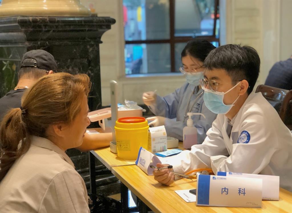 5月22日上午,“紅悅工程”義診團(tuán)走進(jìn)南垟社區(qū)國賓一號小區(qū),為社區(qū)內(nèi)的業(yè)主及孩子們提供測血壓、測血糖、骨密度測量等義診檢查及健康咨詢服務(wù)。