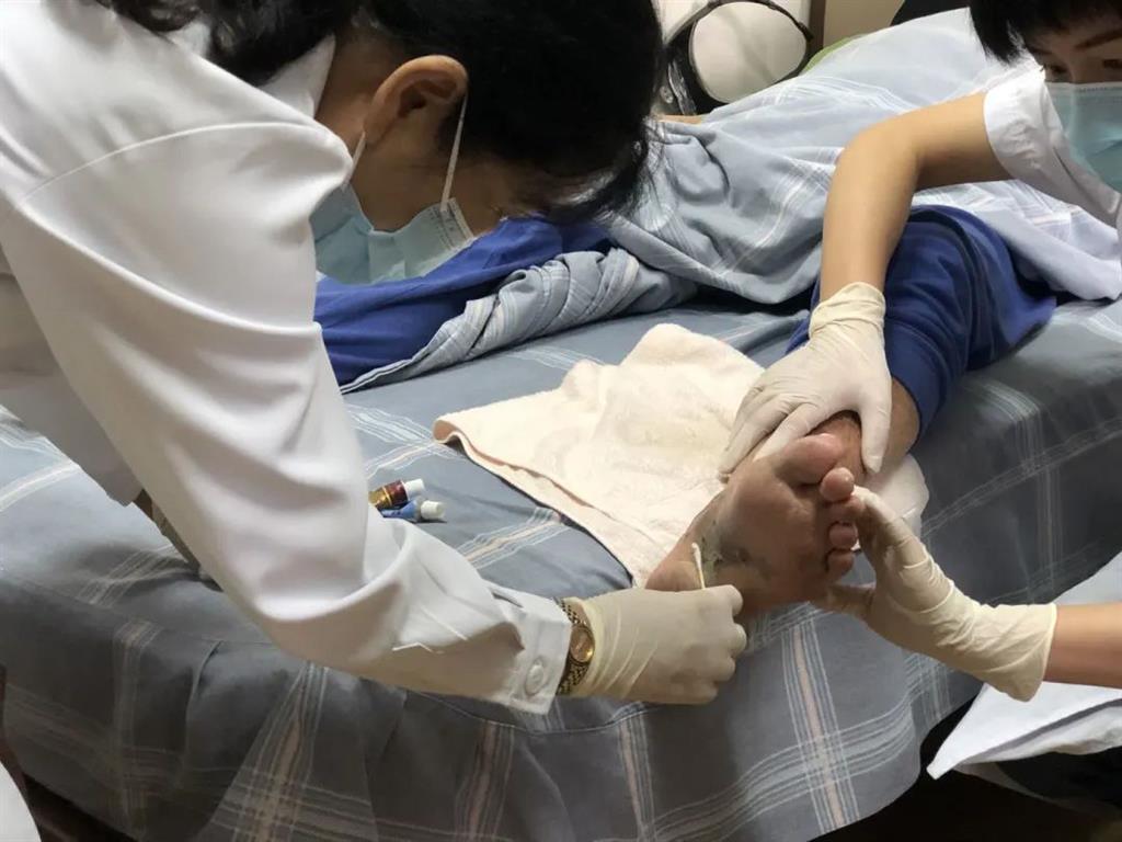 對于一些不便下床前來就診的老人,義診團(tuán)的醫(yī)生們進(jìn)行了查房會診,耐心檢查并為老人的病患處做了消毒、清理以及上藥等工作,告知睦鄰頤養(yǎng)中心護(hù)理人員老人病情現(xiàn)狀,以及該如何養(yǎng)護(hù)。